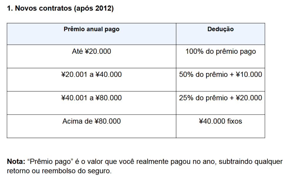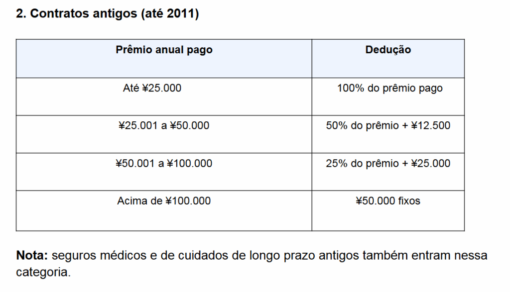 Exceção: contratos antigos com prêmio anual até ¥9.000, já deduzidos no ajuste anual, não